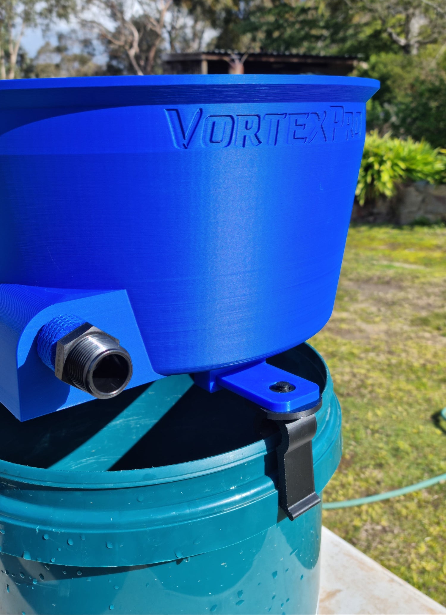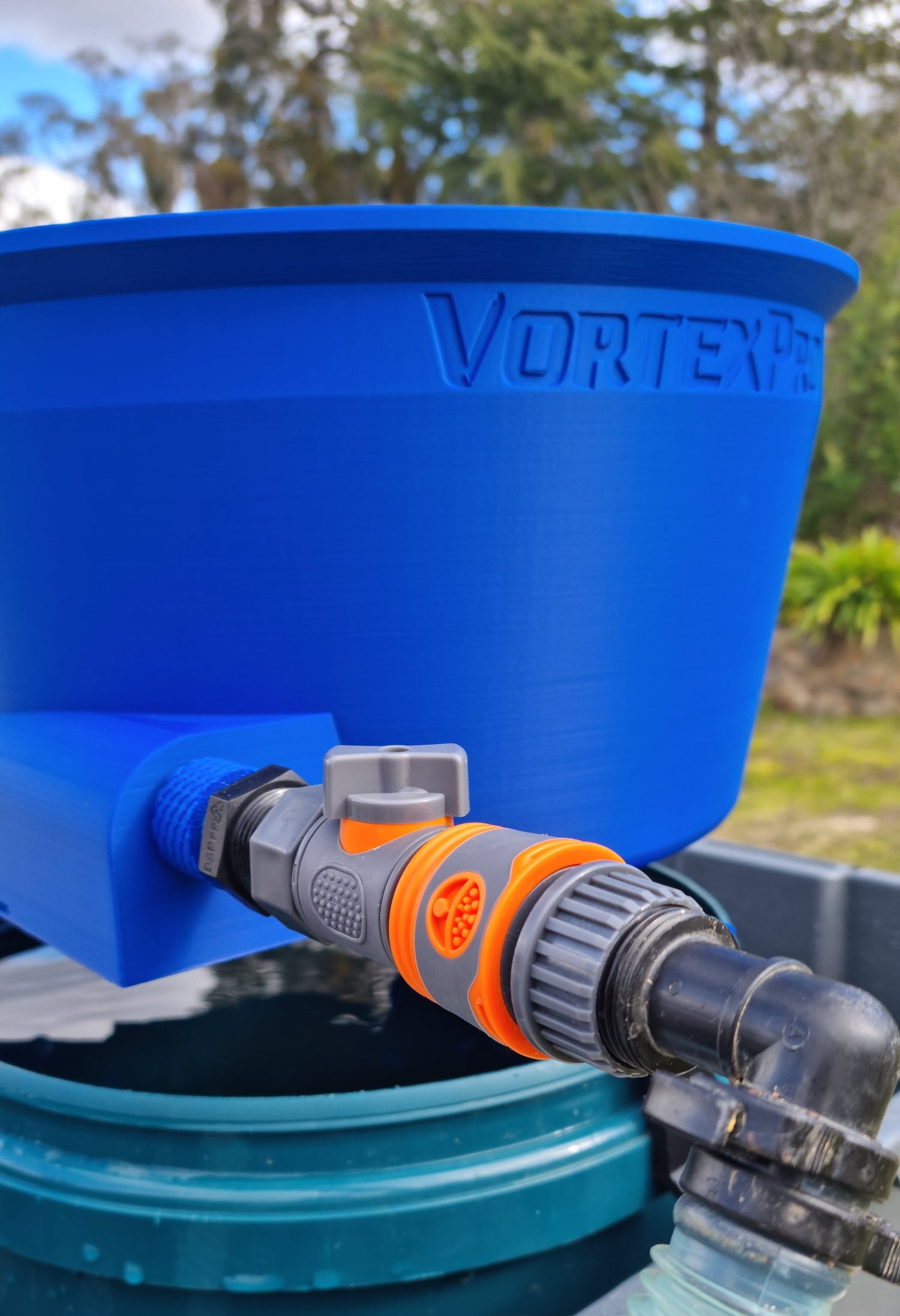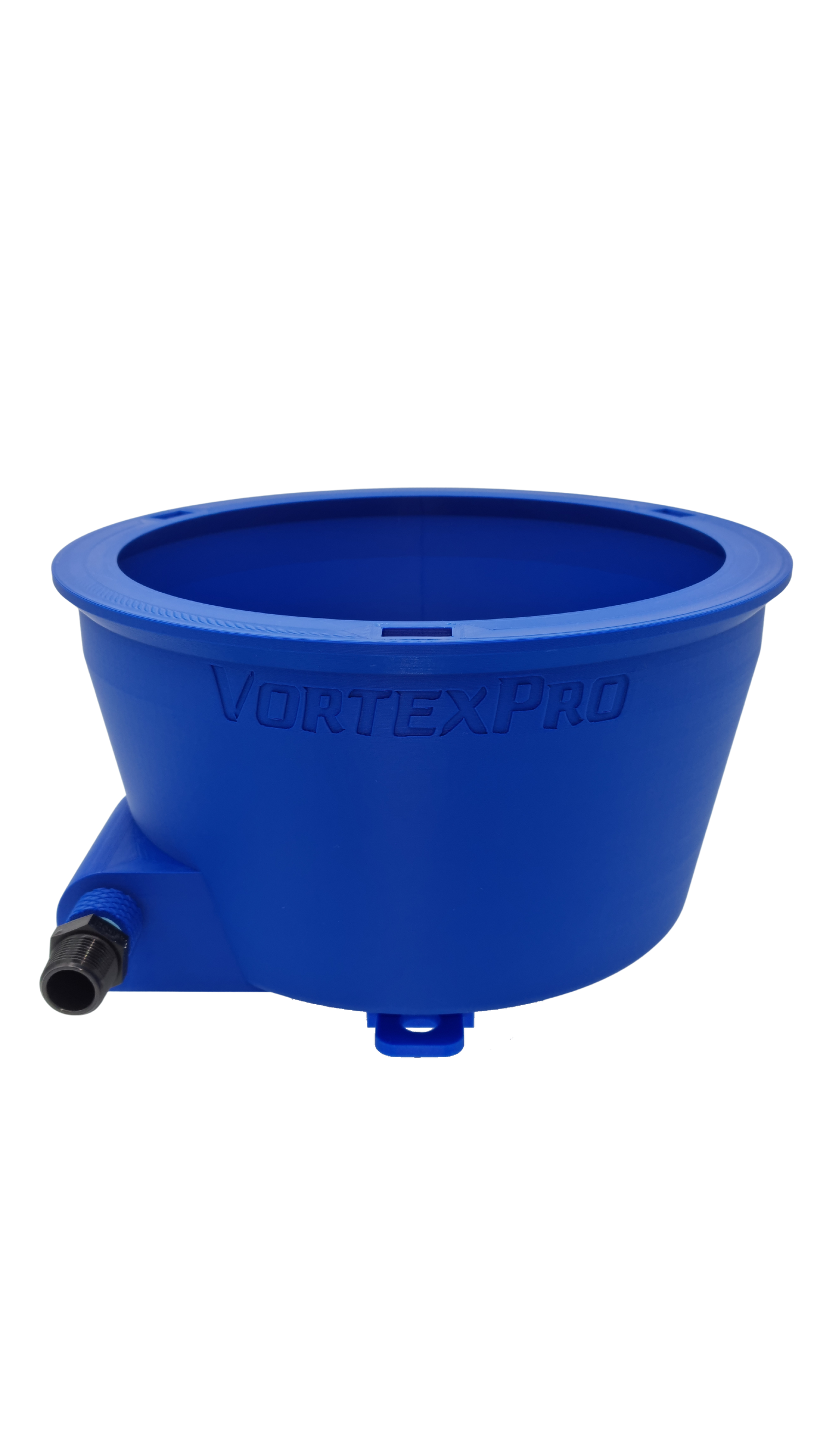 The VortexPro features a built-in jet nozzle—engineered directly into the bowl’s inlet—to deliver smooth, balanced inflow straight into the vortex system. Below that, a custom thread converter comes pre-fitted, acting as a sacrificial part to absorb stress and protect the bowl from damage if overtightened. If it cracks, simply swap it out—far better than cracking the entire bowl, which is exactly what happens with most other bowl designs. All plumbing components come pre-installed and ready to go. Just connect a standard garden hose 16mm female coupling, or grab the optional pump and hose kit for a complete, recirculation plug-and-play setup.