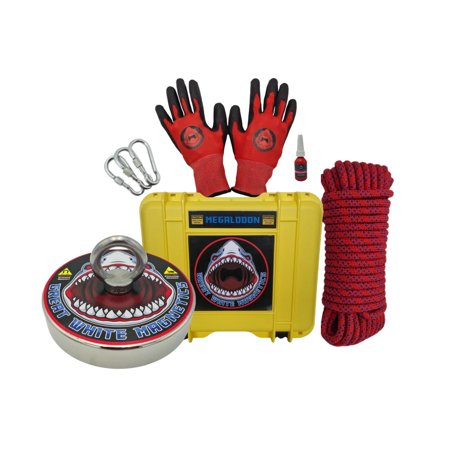 The MEGALODON isn’t just a magnet; it’s a kit designed for magnet fishing experts. Equipped with everything you need—from thick 10mm rope to a heavy-duty carry case—this kit provides you with the tools and tackle to dive into your treasure-hunting adventures with confidence and ease. Got your eye on a safe? This it the magnet to retrieve it.