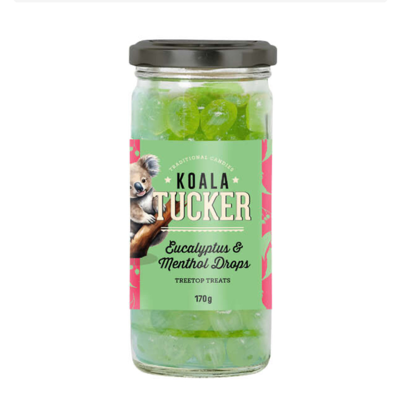 Take your tastebuds on a treetop adventure with Koala Tucker Eucalyptus Drops! These classic Aussie lollies deliver a refreshing eucalyptus burst in every bite, perfect for soothing the throat or just enjoying a hit of nostalgia. Packed in a vibrant jar with cheeky koala charm, they're a fun and flavourful gift for tourists, mates overseas, or anyone who loves a uniquely Aussie treat. Part of the laugh-out-loud Valley Produce novelty range!